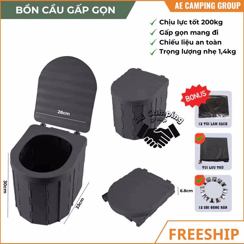 - Bồn cầu gấp gọn: Dễ dàng lắp đặt và gấp gọn khi không sử dụng, rất thích hợp cho các chuyến đi cắm trại.