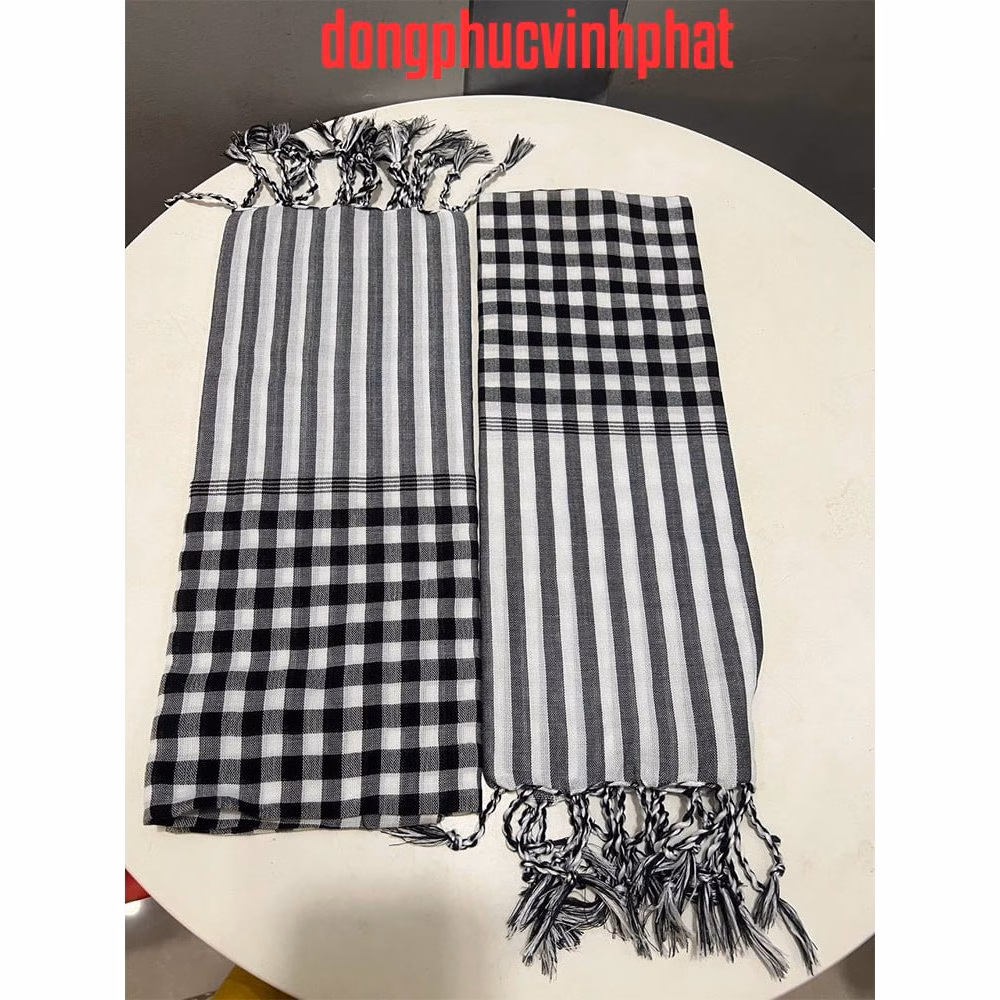 🔥 Khăn Rằn Nam Bộ Có Tua Rua Sọc Caro Đen Trắng Nhạt, Khăn Rằn Dệt Vải Đẹp,Có Nhận In Thêu Logo-Hình Thật đang giảm giá!