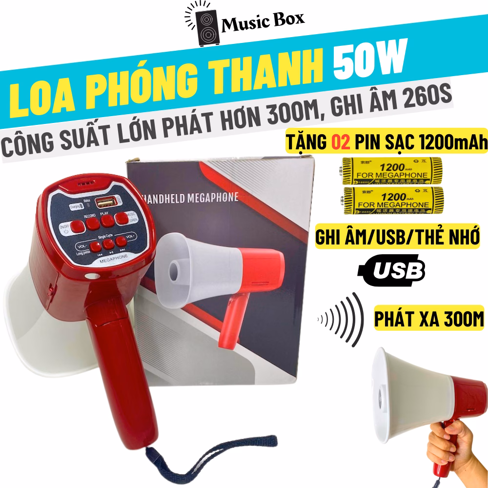 🔥 Loa Phóng Thanh Cầm Tay Music Box MB50 Cổng USB, Thẻ Nhớ, Bluetooth, Thu Âm Lặp Lại, Nói Trực Tiếp, Rao Hàng Megaphone đang giảm giá!