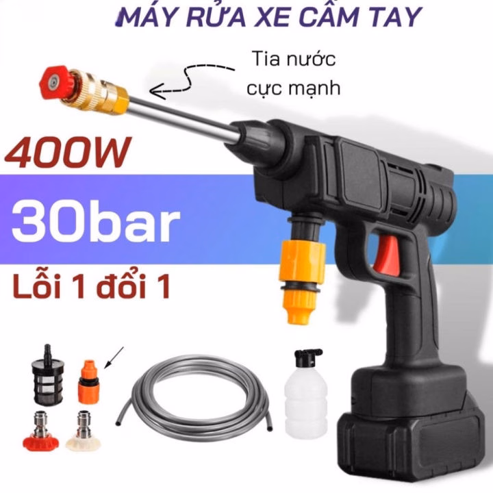 - Loại máy: Có hai loại máy rửa xe cầm tay phổ biến là máy chạy bằng xăng và máy chạy bằng pin. Máy chạy bằng xăng thường có công suất lớn hơn, nhưng cũng ồn ào và gây ô nhiễm môi trường hơn. Máy chạy bằng pin thì tiện lợi và yên tĩnh hơn, nhưng có thể có công suất nhỏ hơn.