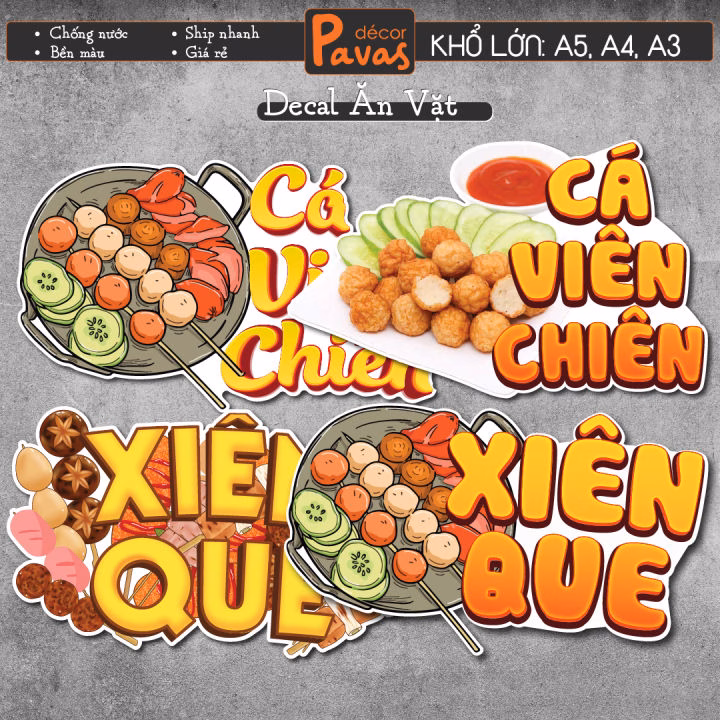 🔥 Decal Cá Viên Chiên, Xiên Que chống nước trang trí dán quán trà sữa, cà phê, quán ăn, dán tường, tủ. TTQ06 đang giảm giá!