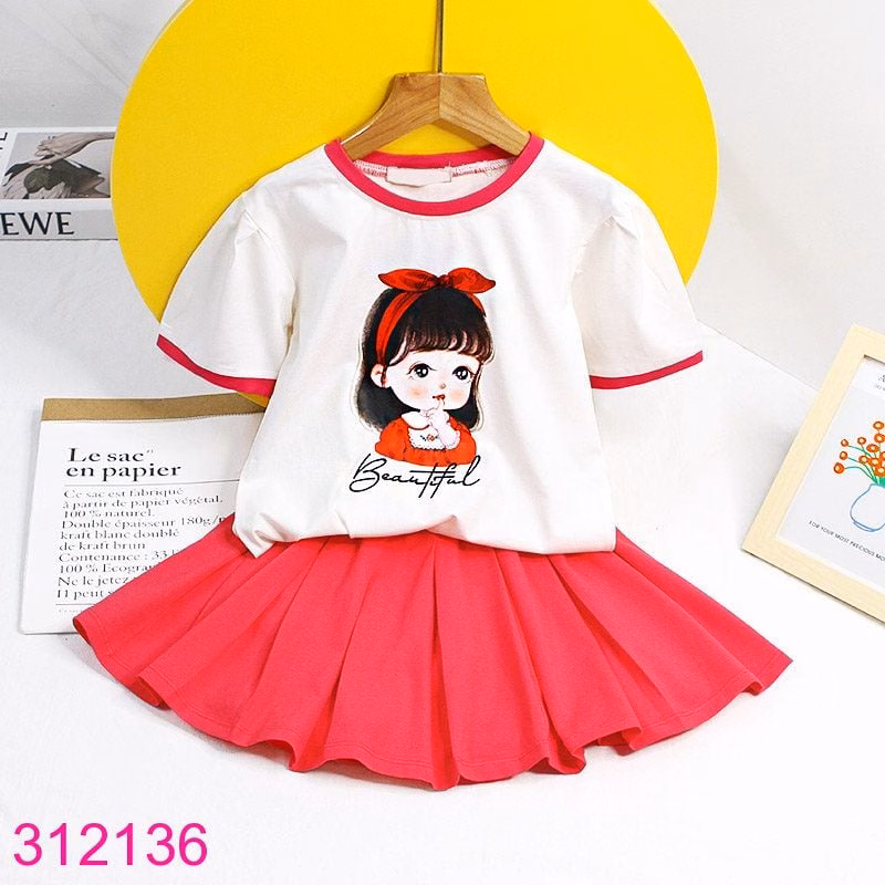 - Set váy ngắn có tay ngắn: thiết kế này thông thoáng và giúp bé gái cảm thấy mát mẻ khi vận động.