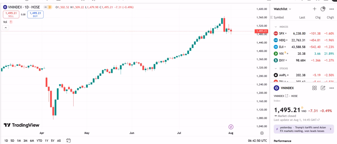 Thị trường chứng khoán vừa trải qua một tuần giao dịch đầy biến động, với chỉ số VN-Index giảm 2,3% trong tuần. Nguyên nhân chủ yếu đến từ phiên giảm mạnh 4,1% vào ngày 29/7. Tuy nhiên, trong 3 phiên giao dịch cuối tuần, VN-Index đã có sự giằng co quanh mốc 1.500 điểm. Các chuyên gia phân tích cho rằng lực cầu bắt đáy đã xuất hiện tại ngưỡng này, nhưng vẫn chưa đủ mạnh để tạo ra một đáy vững chắc cho thị trường.